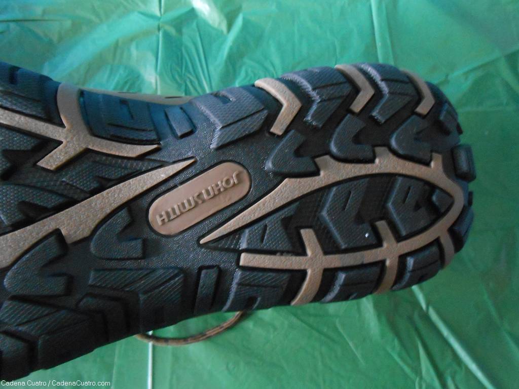 Las zapatillas que hoy os mostramos en CadenaCuatro son un claro ejemplo de todo esto que estamos diciendo. A un precio más competitivo que sus rivales (sin ir más lejos, mucho más asequibles que las Yumas Lander), tienen unos materiales muy meritorios, una horma estupenda y una gran comodidad. Destaca en ellas, sobre todo, su suela envolvente, hecha íntegramente de caucho, lo que nos asegura una elevada durabilidad (por encima del resto de calzado del sector, empeñados todos en poner gomas EVA que duran cuatro días), y con una llamativa estética a dos colores. Sus tacos tienen la suficiente altura como para asegurarnos un buen agarre en superficies "conflictivas" (barro, nieve...), pero también la adecuada separación como para que no acabemos llevando enganchadas a ella todas las "piedrecitas" del camino (cosa qe odio y en la que siempre suelo fijarme en este tipo de calzados).